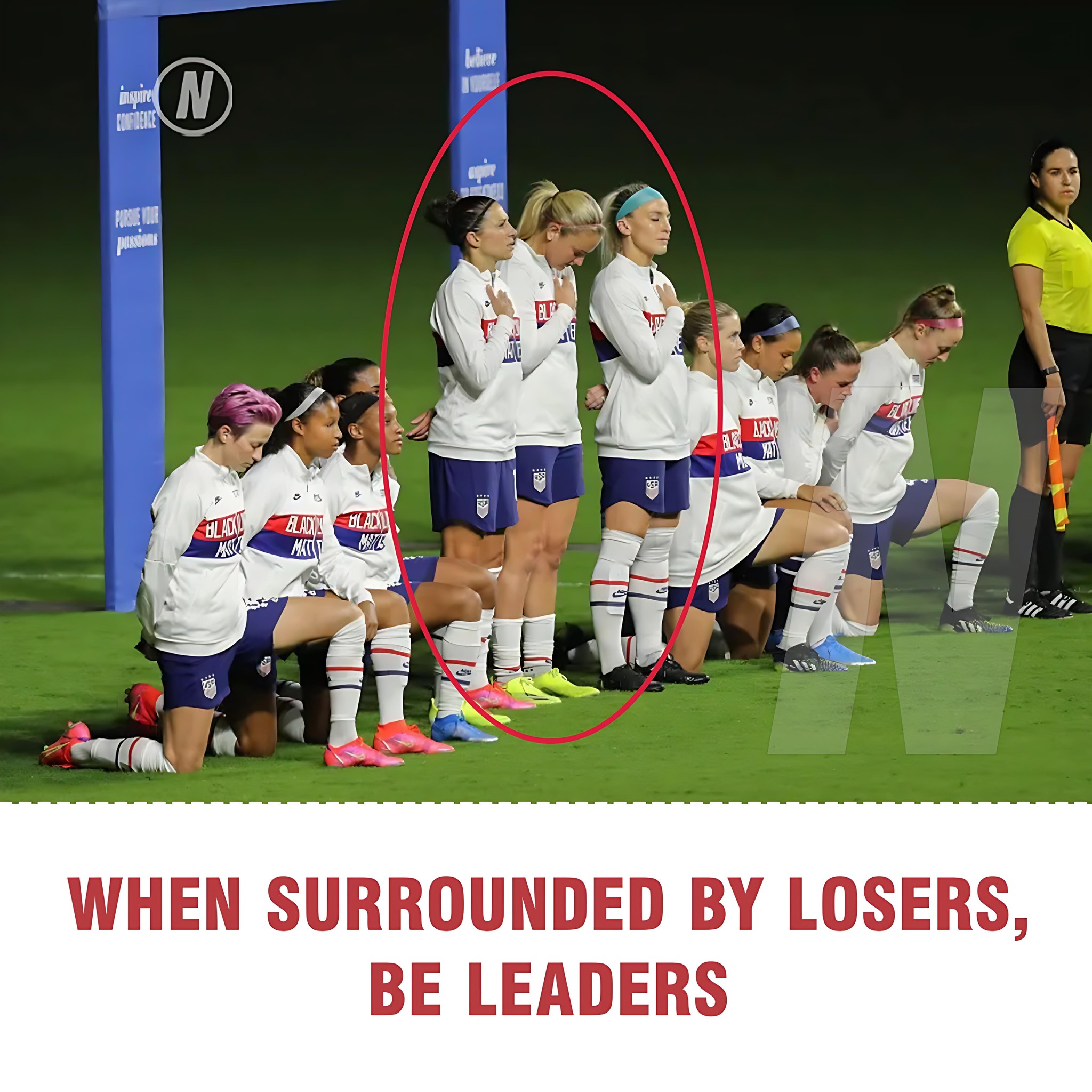 Athletes across sports responded by kneeling during the anthem. Soon thereafter, U.S. Soccer repealed the rule and President Cindy Parlow Cone apologized for it.