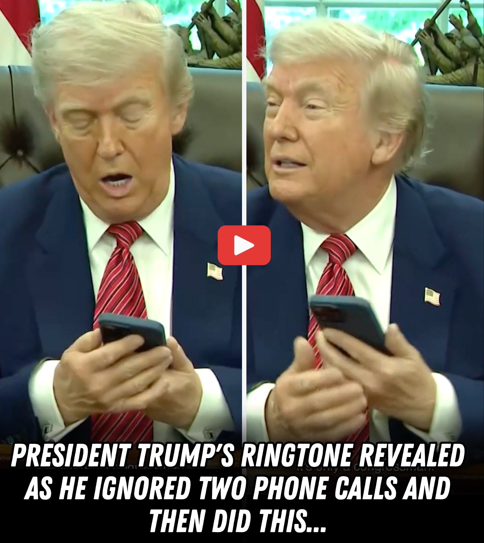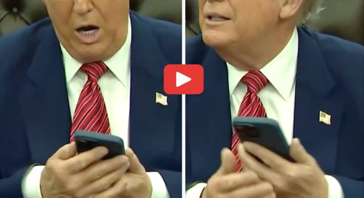As Trump sat at the historic Resolute Desk, surrounded by staff, press, and lawmakers, his phone began to ring—cutting through the formal atmosphere. Without skipping a beat, Trump glanced at the device and said with a smile: