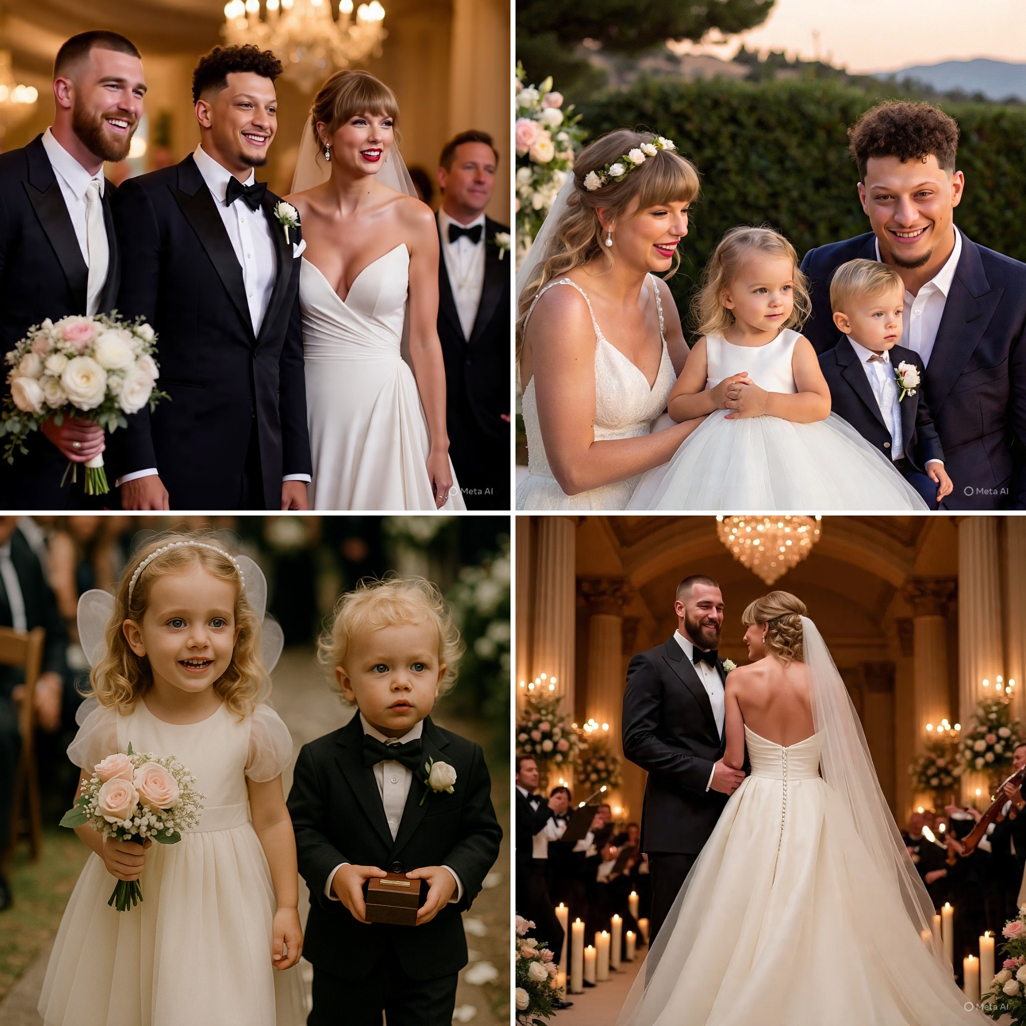 Fans, already buzzing over Mahomes’ attendance, lost it when grainy clips surfaced on X, amassing 15 million views in hours. The videos, reportedly leaked by a guest’s plus-one, captured Sterling giggling as she tossed petals, and Bronze nearly dropping the rings, only for Mahomes to swoop in with a playful save. “Sterling and Bronze are the MVPs of this wedding,” one fan tweeted, while another gushed, “Taylor and Travis chose them? My heart can’t handle this!” The event’s secrecy—guests signed NDAs, and phones were restricted—only fueled the online chaos, with fans scouring every frame for details.