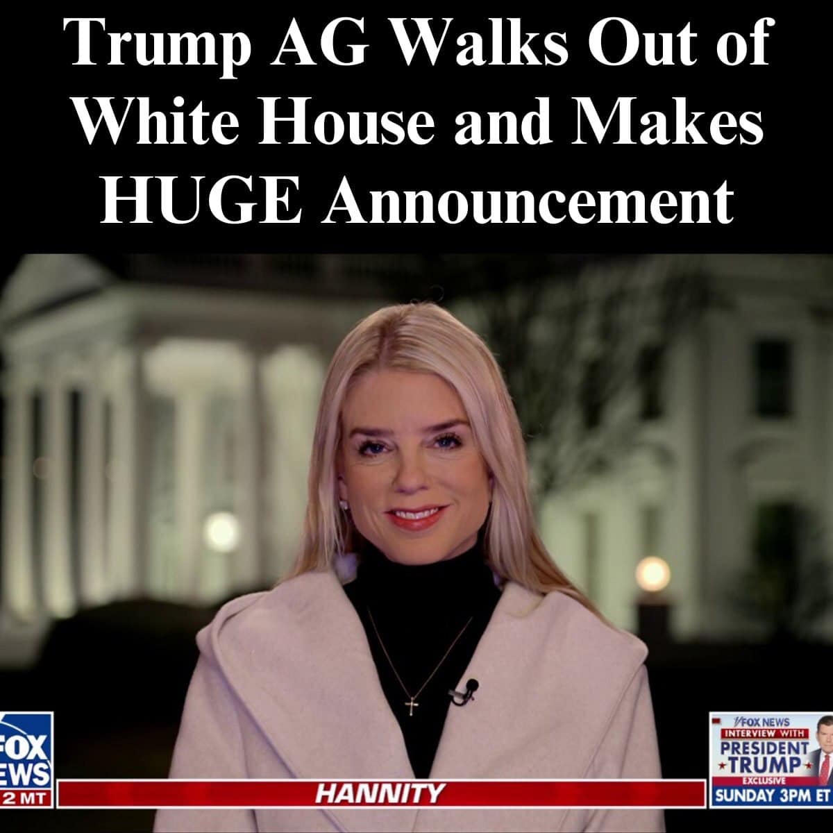During an interview outside of the White House, Bondi spoke with Fox News host Sean Hannity about important topics including safety, immigration, and national security.