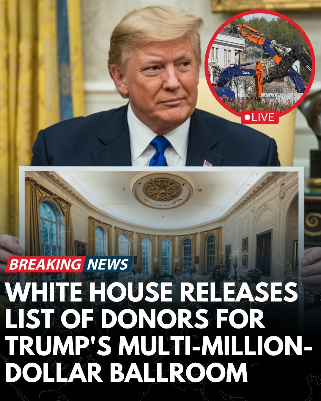 The White House has revealed the list of donors backing President Trump’s extravagant $300 million project to build a new 90,000-square-foot ballroom. Slated to replace the historic East Wing, the project has stirred significant controversy, with critics questioning both the demolition of the East Wing and the influence of corporate and individual donors on the administration.