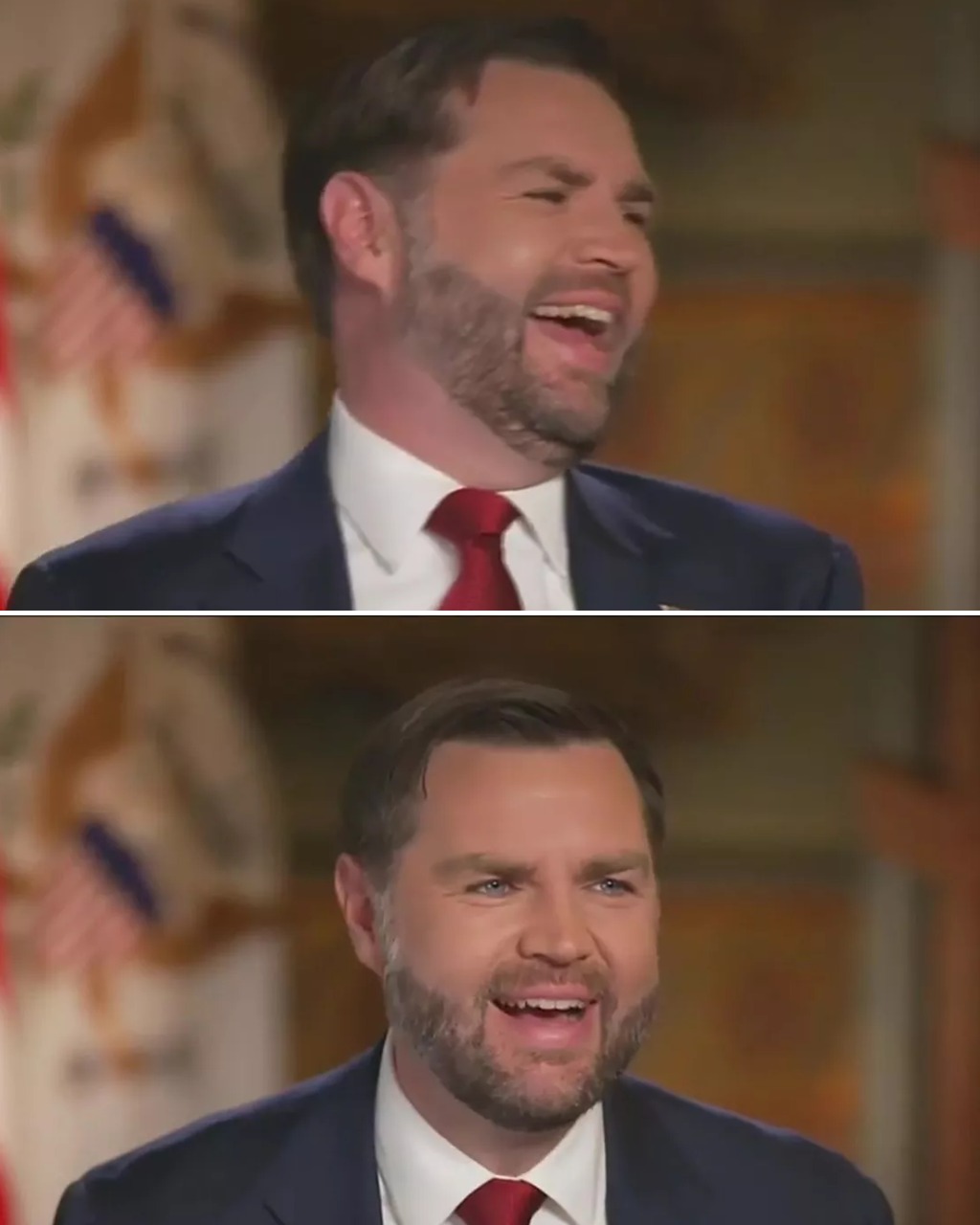 Hannity then asked, “Have you put it in an extreme mode just for kicks and giggles? It’s a little… Well, if you want-,” as Vance eagerly interupped, “I have not, Sean. I don’t want the media to attack me,” as he burst into a fit of laughter