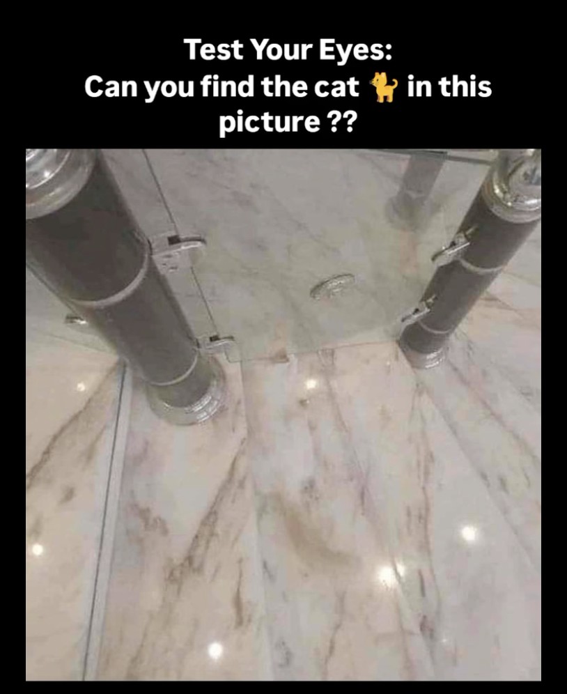 The image at the heart of the challenge appears simple at first glance: a marble floor with reflective surfaces and two towering dark pillars. Nothing out of the ordinary. But upon closer inspection, a cat is cleverly hidden within the scene, blending seamlessly into the surroundings. It’s a true test of focus and patience as the cat remains nearly invisible, waiting to be discovered by those with the sharpest eyes.