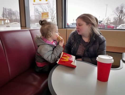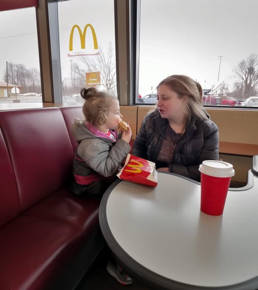 They sat at the table next to mine. The girl’s excitement was palpable as her mother unwrapped the hamburger and split it in half, handing the larger piece to her daughter. The mom then reached into her bag and pulled out a small thermos, pouring what looked like tea into a plastic cup she had brought from home.