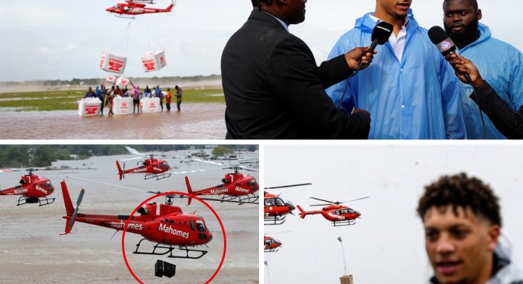 In an astonishing act of kindness and leadership, NFL superstar Patrick Mahomes stunned flood-weary communities across Texas this week when six private helicopters descended upon some of the state’s hardest-hit areas, delivering desperately needed flood relief. But what truly electrified the thousands gathered below wasn’t just the life-saving food and water in the first five helicopters—it was the extraordinary surprise that came with the sixth.