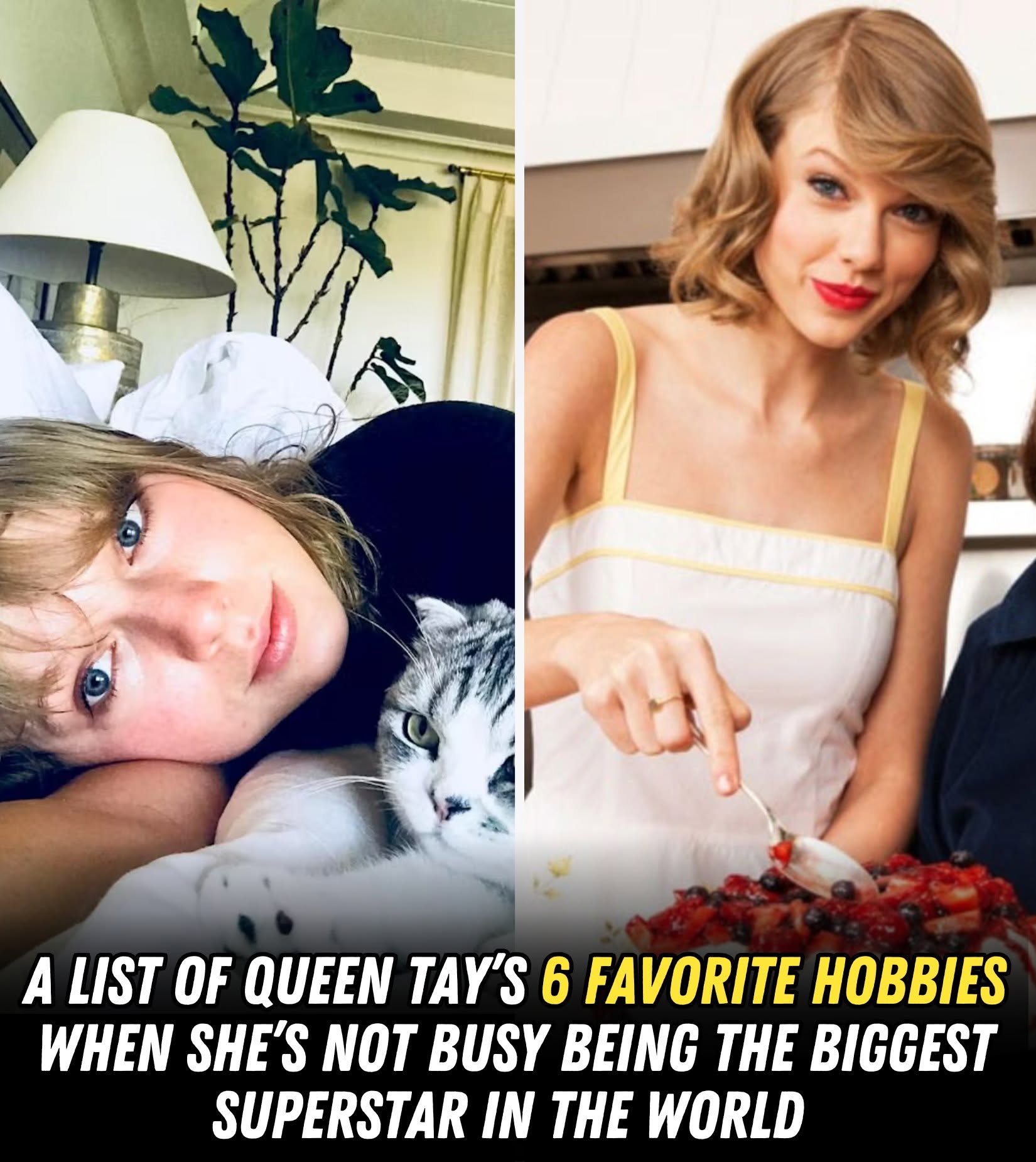 One of Taylor’s top go-to hobbies is baking and cooking. She’s often spoken about how relaxing she finds time in the kitchen. Her style? A mix of spontaneous and creative.